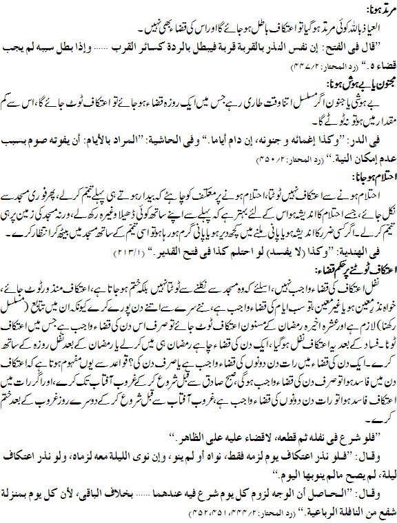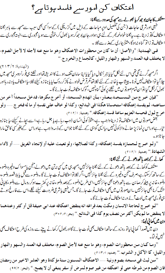اعتکاف کن امور سے فاسد ہوتا ہے؟