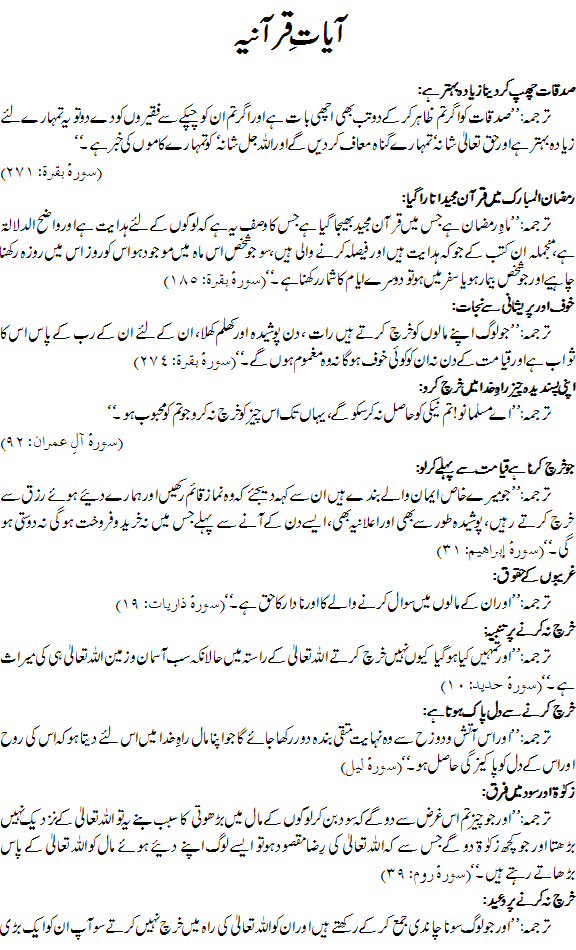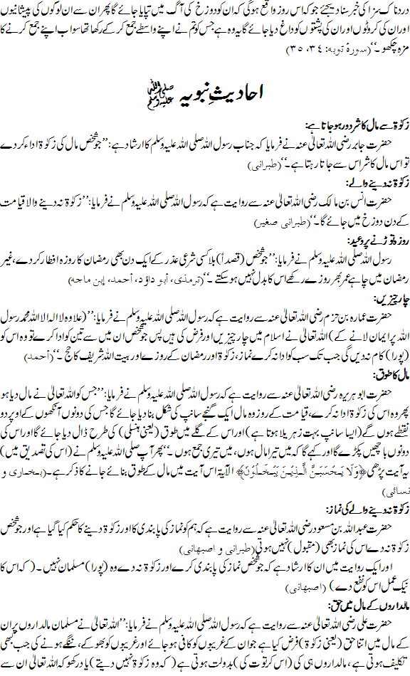 ذکوۃ سے متعلق آیات قرآنیہ و احادیث