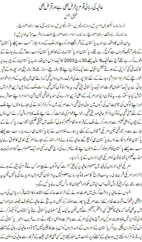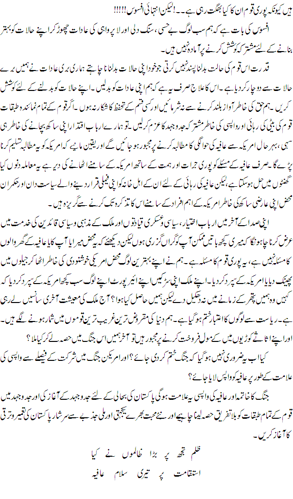 - Category: ڈاکٹر عافیہ صدیقی صاحبہ