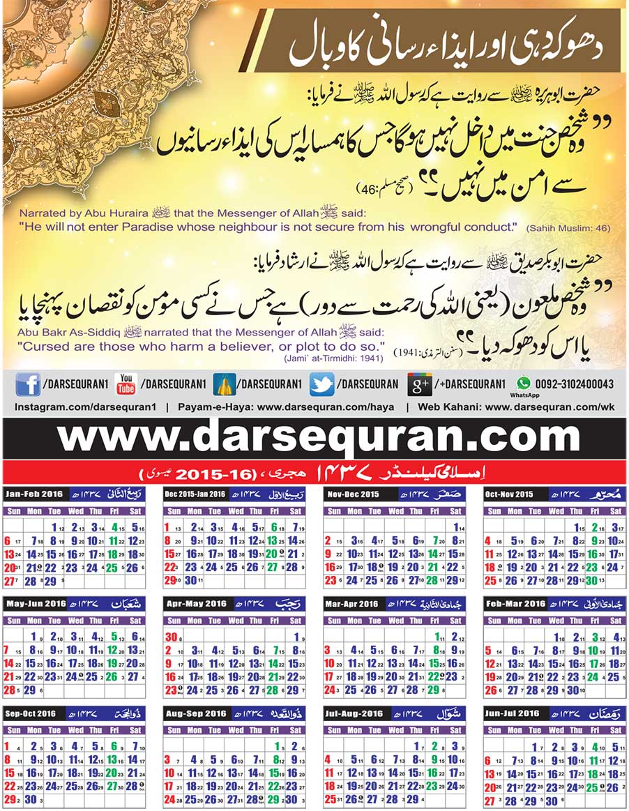 اسلامی کیلنڈر 1437 ھ دیکھیے
