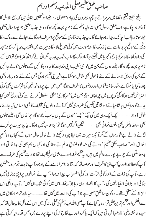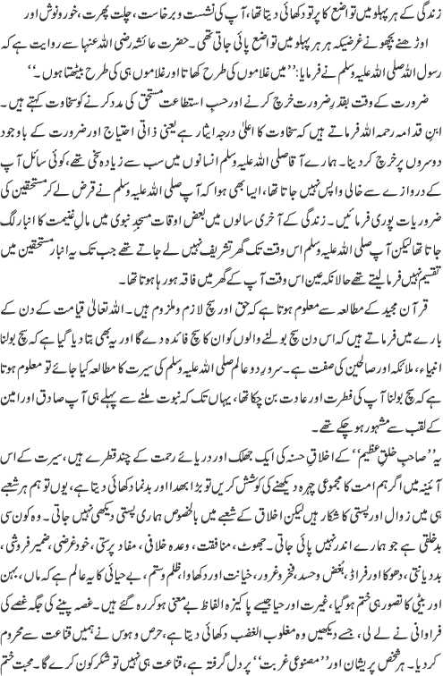 صاحب خلق عظیم صلی اللہ علیہ وسلم اور ہم - تحریر مولانا محمد اسلم شیخوپوری