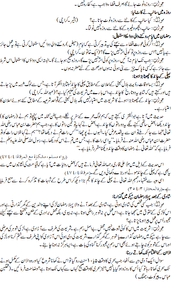- ان چیزوں سے روزہ نہیں ٹوٹتا